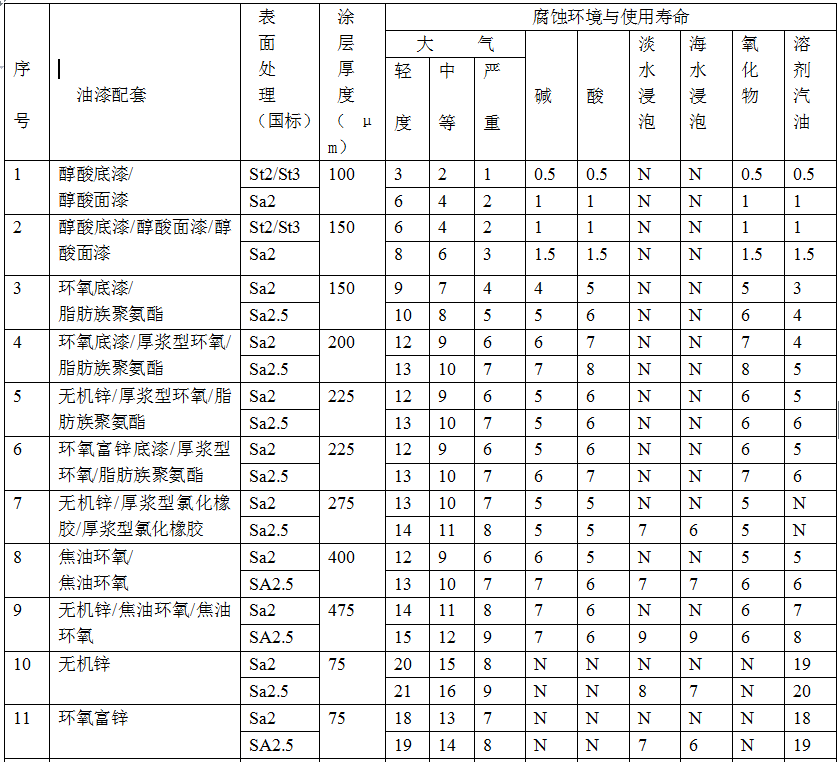 重油漆廠家:?【技術(shù)指南】:油漆配套的使用年限表